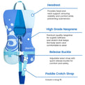 Keep your little ones safe and confident in the water! Designed for children 20-50 lbs, this swim vest features a secure crotch strap, padded headrest, and adjustable buckles for a comfortable fit. Made with high-quality neoprene and foam for gentle support.