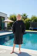 Stay warm & dry anywhere! Owntop's windproof surf coat features a quick-dry terry lining and fully waterproof shell. The oversized design allows easy changing, while multiple zipper pockets keep essentials secure. Perfect for swimming, surfing and beach days.
